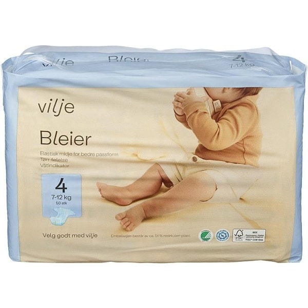 Alle Vilje bleier er utviklet med en ekstra absorberende kjerne med kanal- og SeconDRY® teknologi som gir bedre oppsugningsevne og ekstra tørr følelse. Myke lekkasjesperrer langs bena hindrer effektivt lekkasjer og den elastiske midjen gir fleksible passform. I tillegg har bleiene en praktisk våtindikator foran på bleien som skifter farge når bleien bør skiftes. Bleiene er dermatologisk testet, godkjent av miljømerket Svanen og anbefales av Astma Allergy Nordic.
