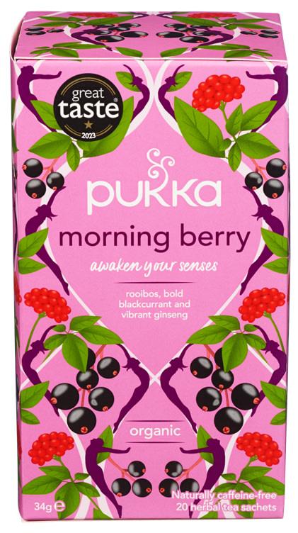 Beskrivelse fra leverandøren En nydelig urtete for å komme i gang med dagen bestående av søte solbær og saftige bjørnebær blandet med hibiskus, roiibos, rosmarin og ginseng.