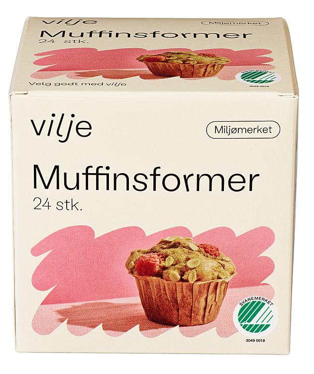 eskrivelse fra leverandøren Vilje muffinsformer er smørefrie engangsformer i ubleket papir. Kan benyttes til baking i ovn og mikrobølgeovn. Muffinsformene er blant de minst miljøbelastende på markedet og er derfor godkjent av Svanemerket.