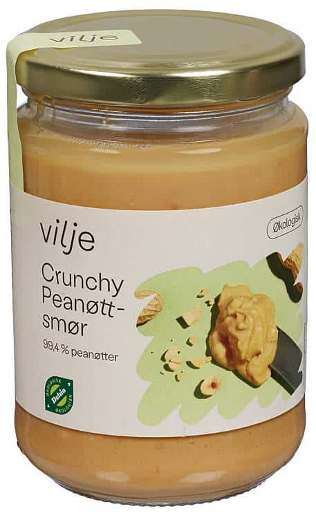 Vilje peanøttsmør har ett høyt innhold av økologiske peanøtter. Med sine crunchy biter peanøtter passer den utmerket på brødskiva, desserter eller topping på grøt.
