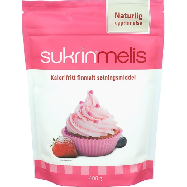 SukrinMelis er finmalt Sukrin som er tilsatt en liten mengde stevia. slik at den har samme søtningsgrad som vanlig melis. SukrinMelis er litt søtere enn original Sukrin og har en rundere smak. men er fortsatt helt uten kalorier og gir ingen blodsukkerstigning.